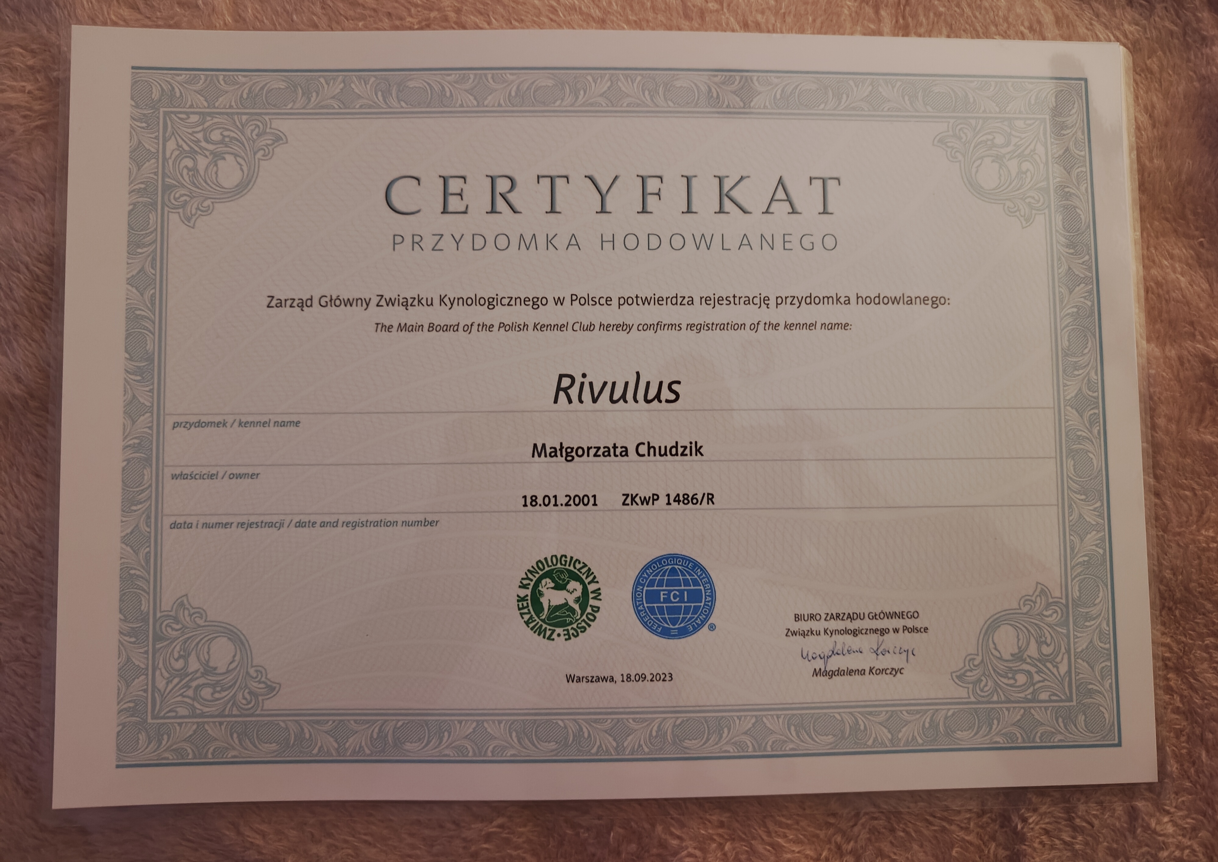Nasza hodowla Rivulus powstała w roku 1999 przy oddziale Warszawskim ZKwP pod patronatem FCI.FCI to skrót od Fédération Cynologique Internationale, czyli Międzynarodowej Federacji Kynologicznej. Jest to największa światowa organizacja kynologiczna, która reguluje hodowlę i klasyfikację ras psów.