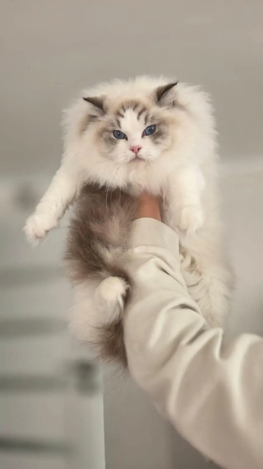Ragdoll to rasa znana ze swojego wyjątkowego charakteru – to koty spokojne, cierpliwe, inteligentne i niezwykle przywiązane do opiekuna. Nazywane są często „kocimi aniołami” ze względu na swoją łagodność oraz charakterystyczną zdolność rozluźniania ciała podczas noszenia na rękach. Ich półdługie, jedwabiste futro, intensywnie niebieskie oczy i harmonijna budowa ciała czynią je jedną z najbardziej rozpoznawalnych ras na świecie.