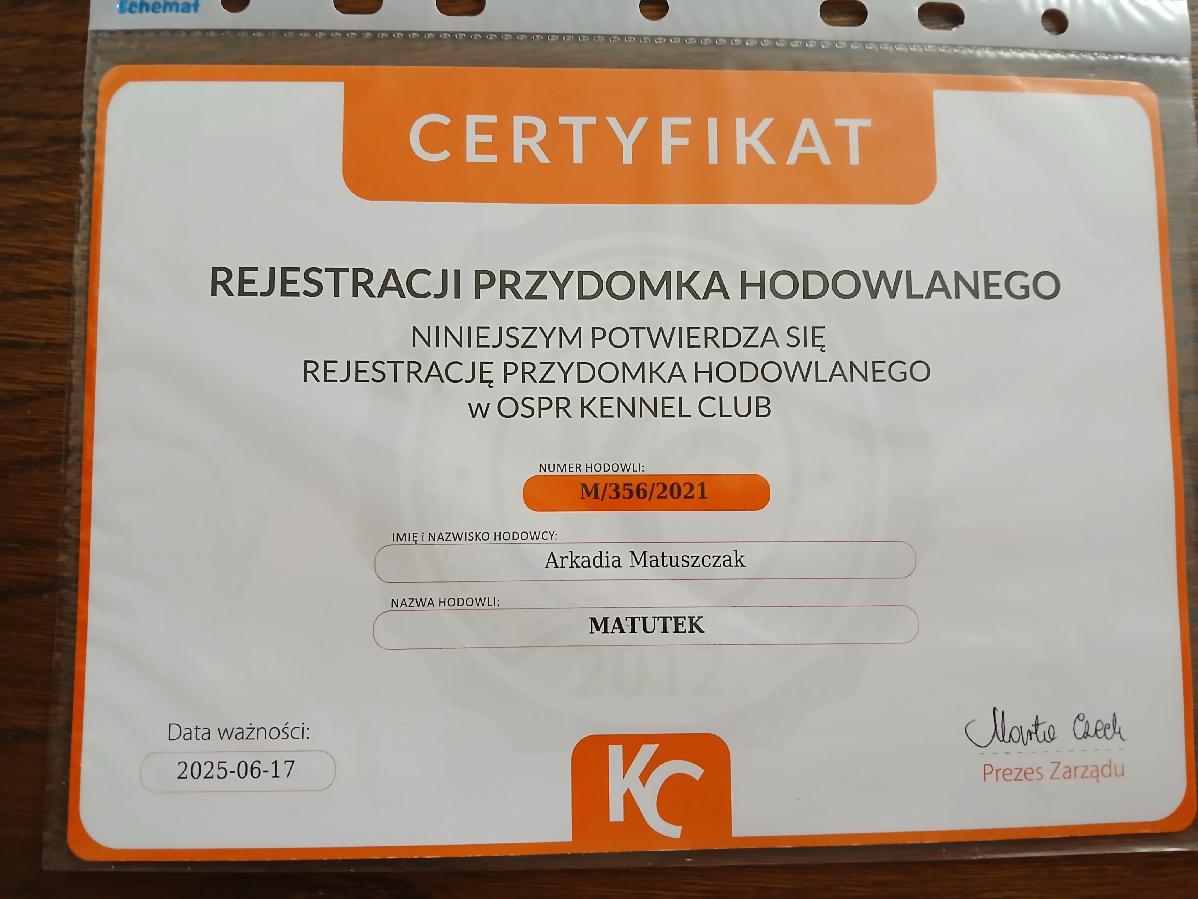 Na podstawie przes艂anych dokument贸w, nasz zesp贸艂 potwierdzi艂 偶e hodowla nale偶y do podanego przez ni膮 stowarzyszenia