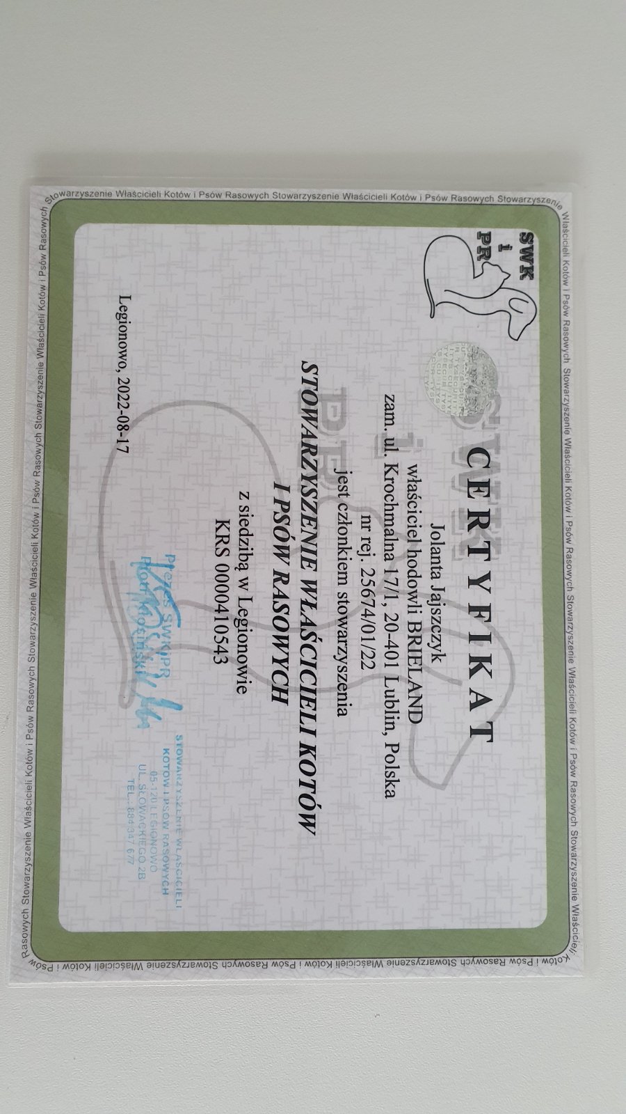 Rodzice zdrowi, bez obciążeń, ojciec posiada badania DNA profile, ATAXIA clear. Rodzice widoczni na zdjęciach.