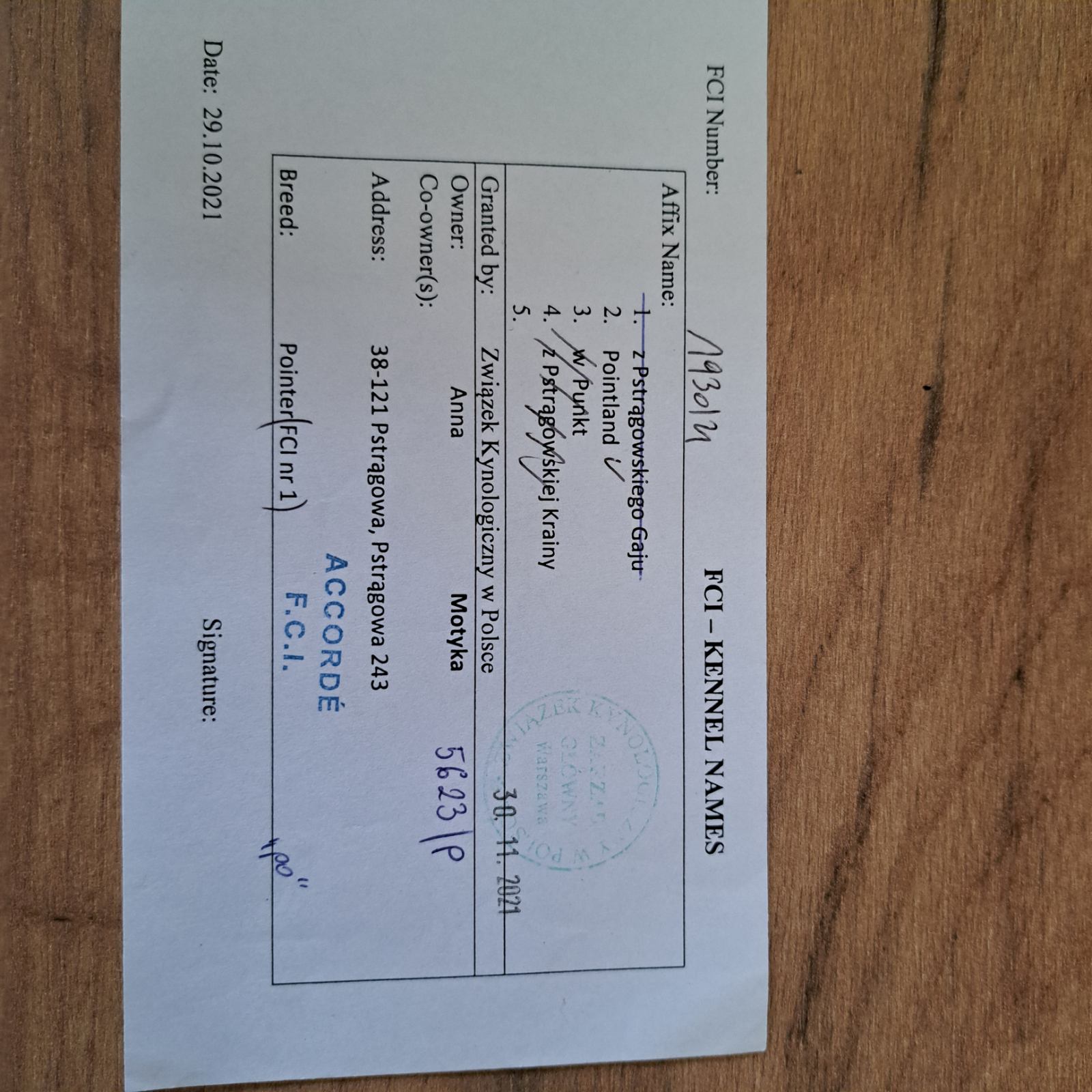 Na podstawie przes艂anych dokument贸w, nasz zesp贸艂 potwierdzi艂 偶e hodowla nale偶y do podanego przez ni膮 stowarzyszenia