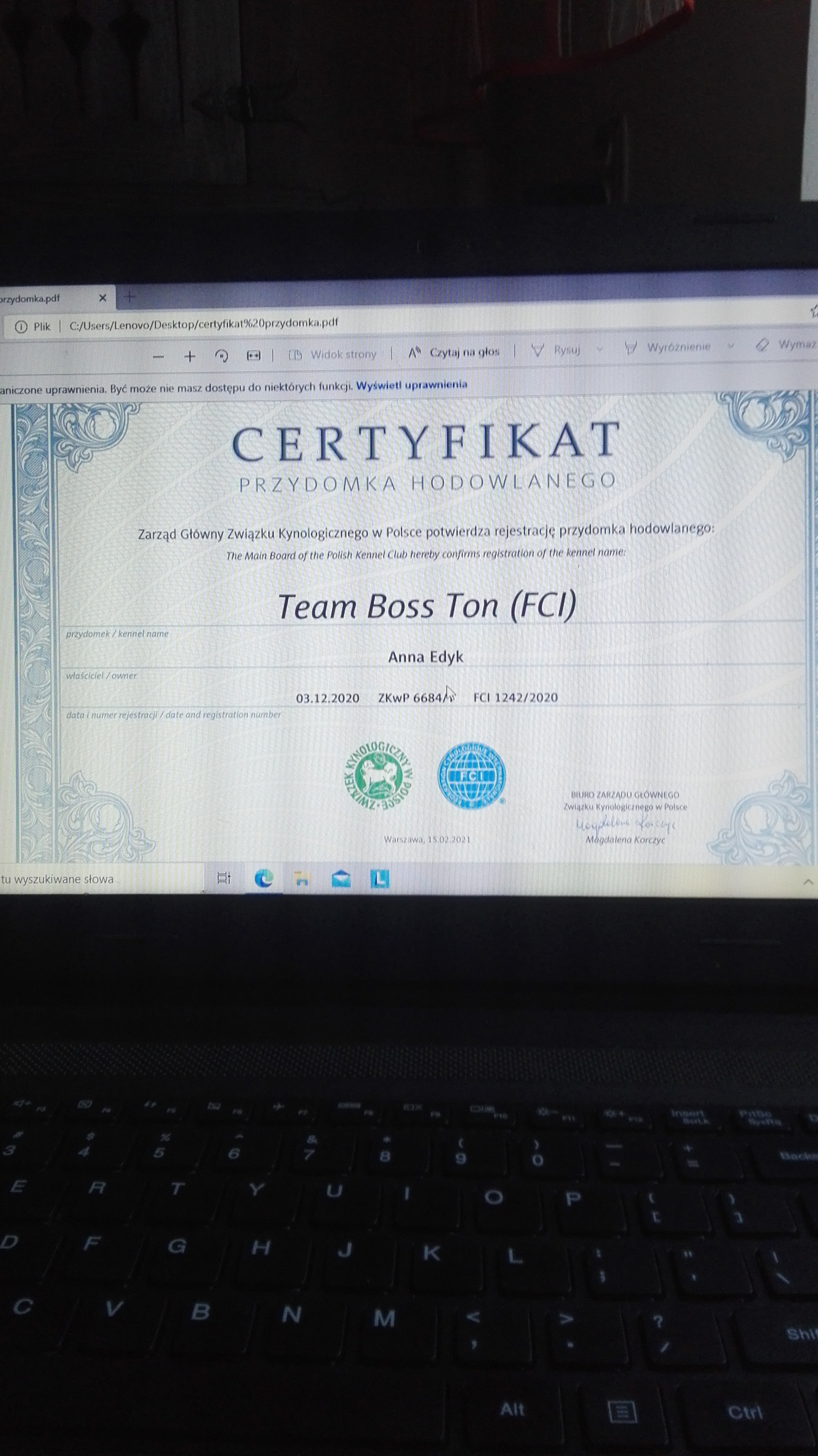 Na podstawie przes艂anych dokument贸w, nasz zesp贸艂 potwierdzi艂 偶e hodowla nale偶y do podanego przez ni膮 stowarzyszenia