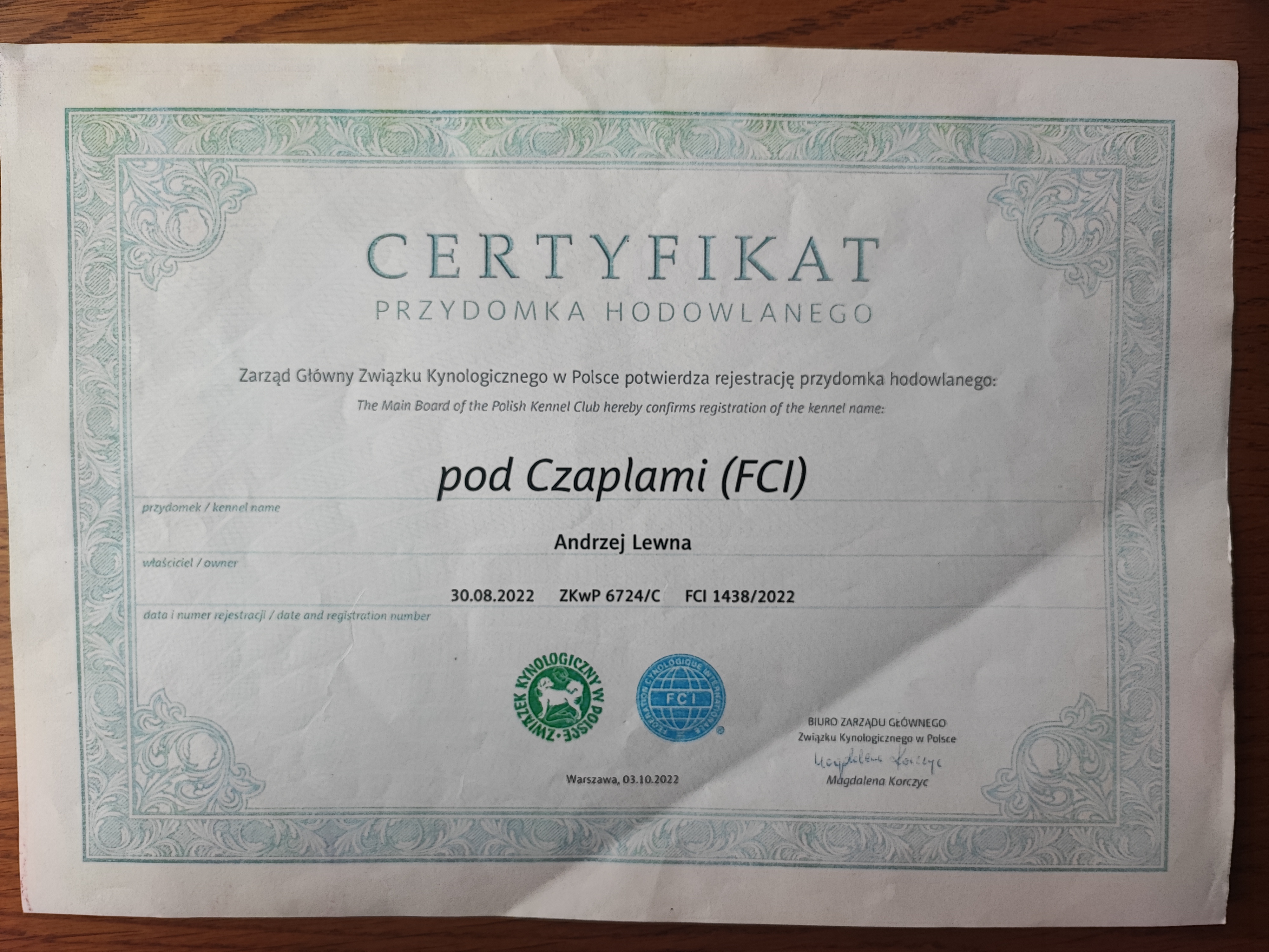 Pieski są zarejestrowane w Związku Kynologicznym w Polsce należącym do światowej federacji FCI, której rodowody są uznawane na całym świecie przez wszystkie Związki Kynologiczne. Psy z rodowodem wydanym przez ZKwP mają prawo brać udział w wystawach i są czysto rasowe o czym świadczy wielopokoleniowy rodowód, stabilna psychika, zdrowie i piękny wygląd.