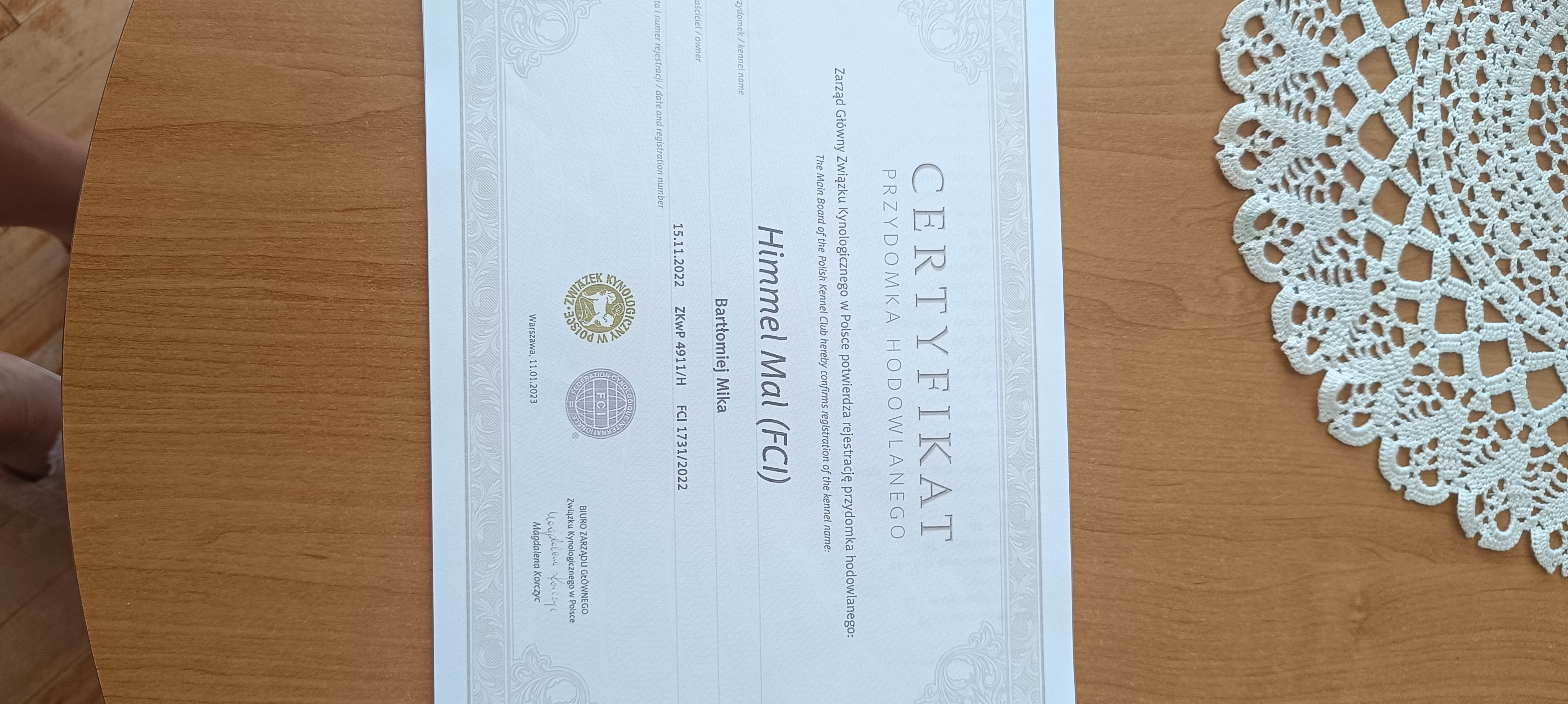 Hodowla podlega pod Międzynarodową Federacje Kynologiczną - FCI (poprzez Polskie ZKwP)