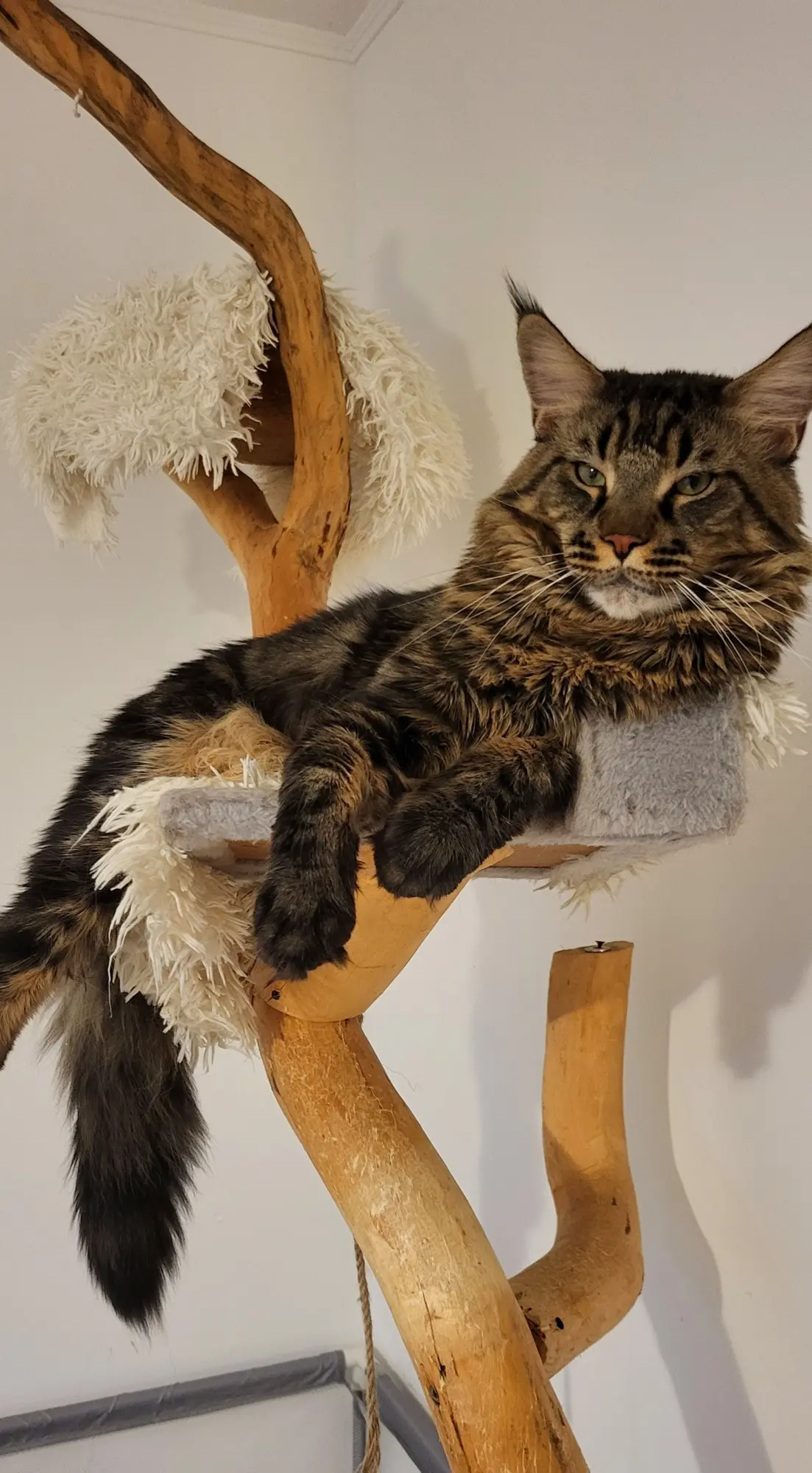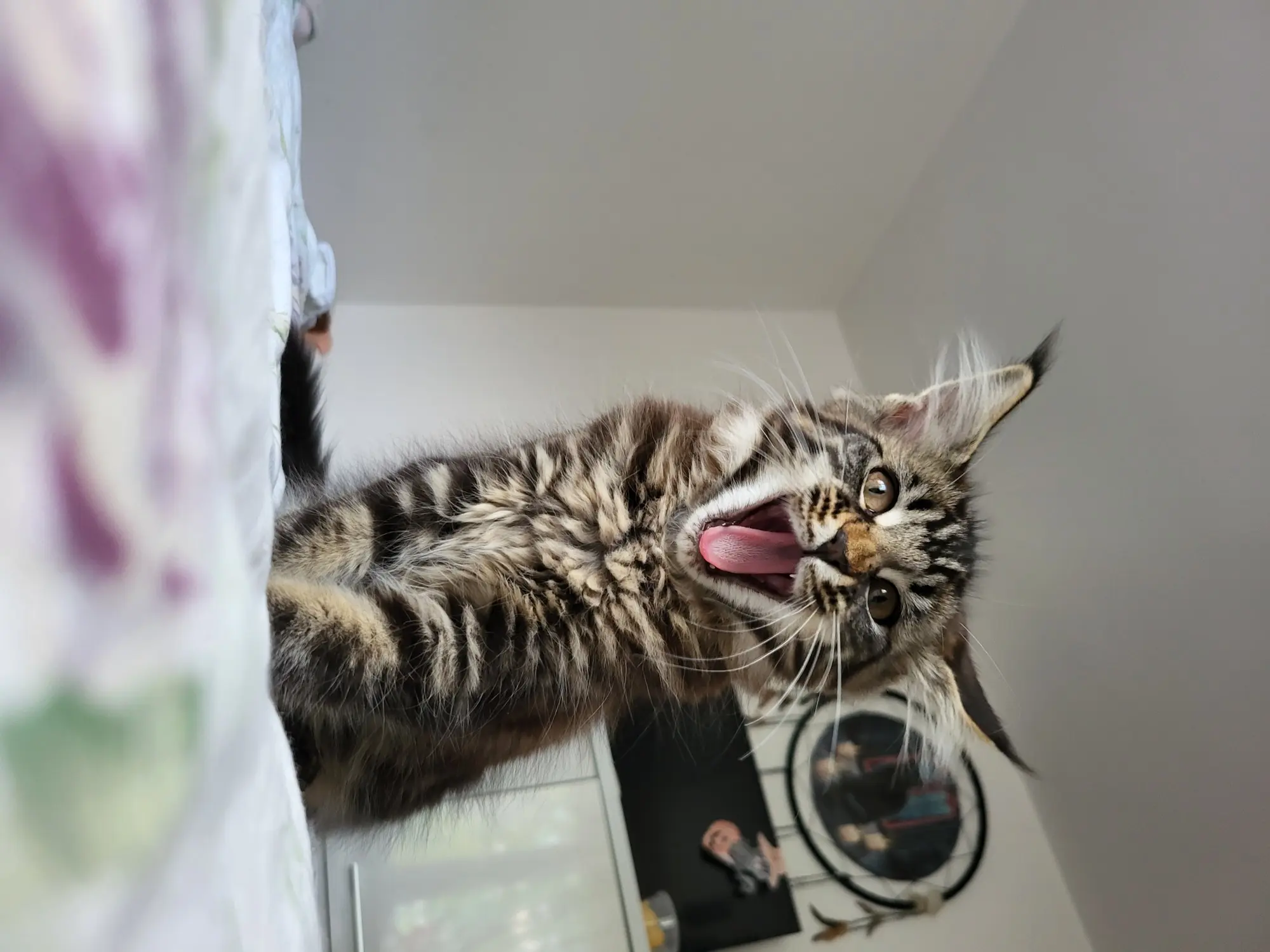Czarny klasycznie pręgowany kocurek.Niezwykle miziasty i towarzyski szuka swojego człowieka do wspólnego spania i zabaw najlepiej wędką.