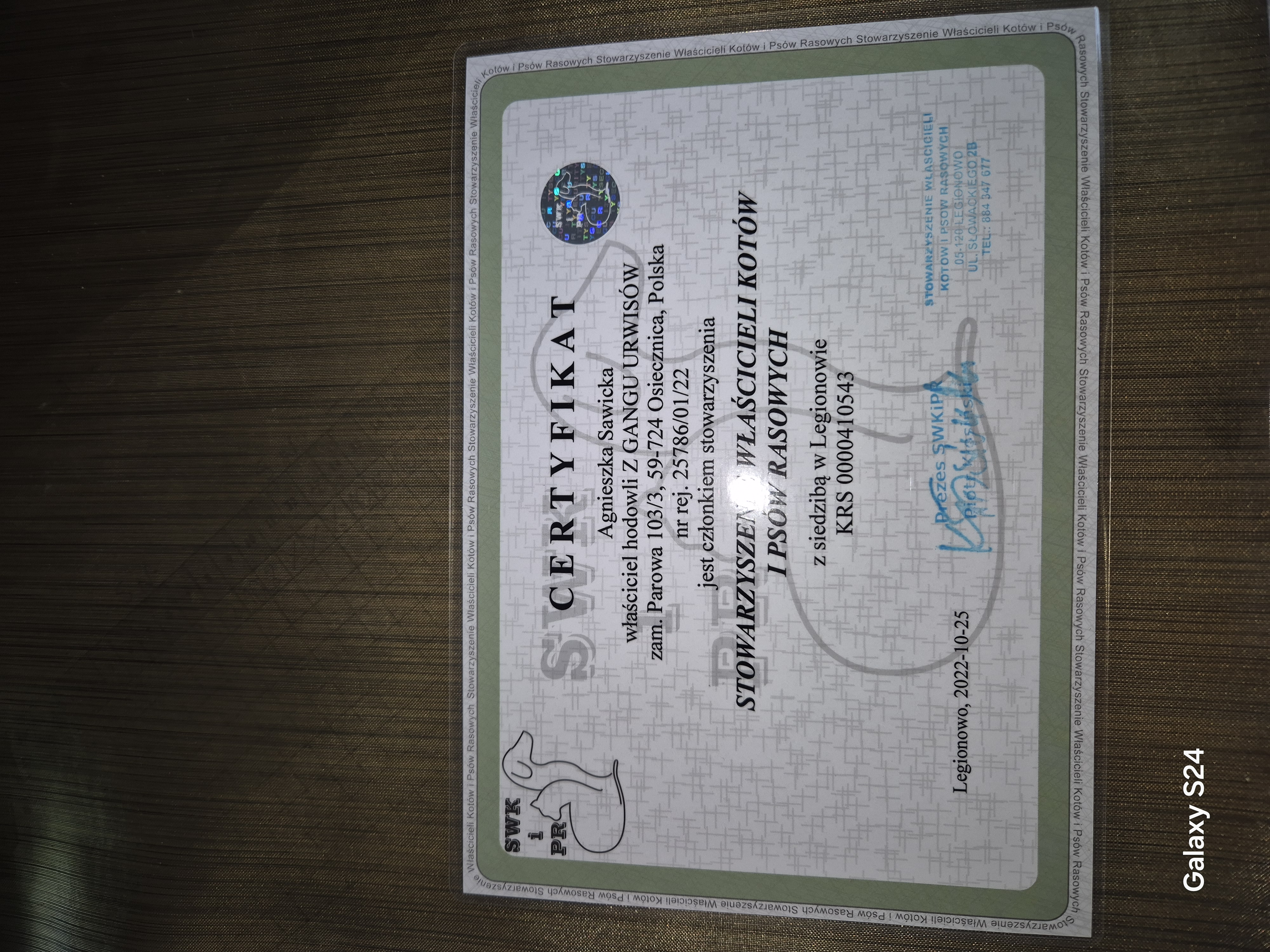 Na podstawie przesłanych dokumentów, nasz zespół potwierdził że hodowla należy do podanego przez nią stowarzyszenia