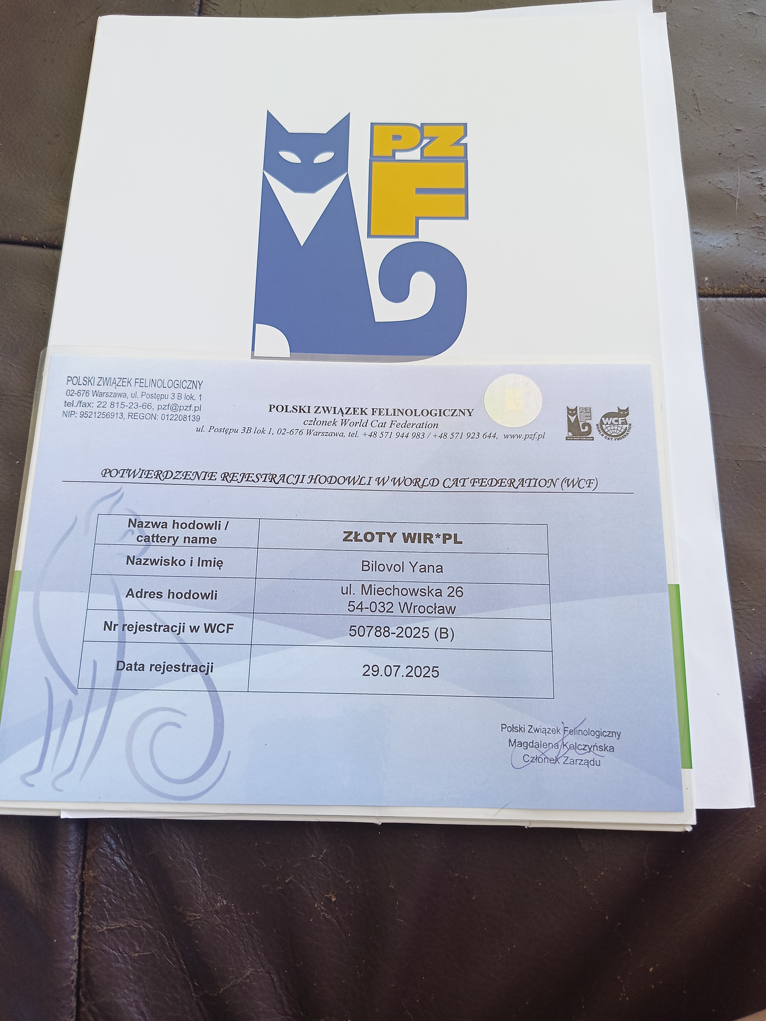 Hodowla podlega pod WCF - World Cat Federation