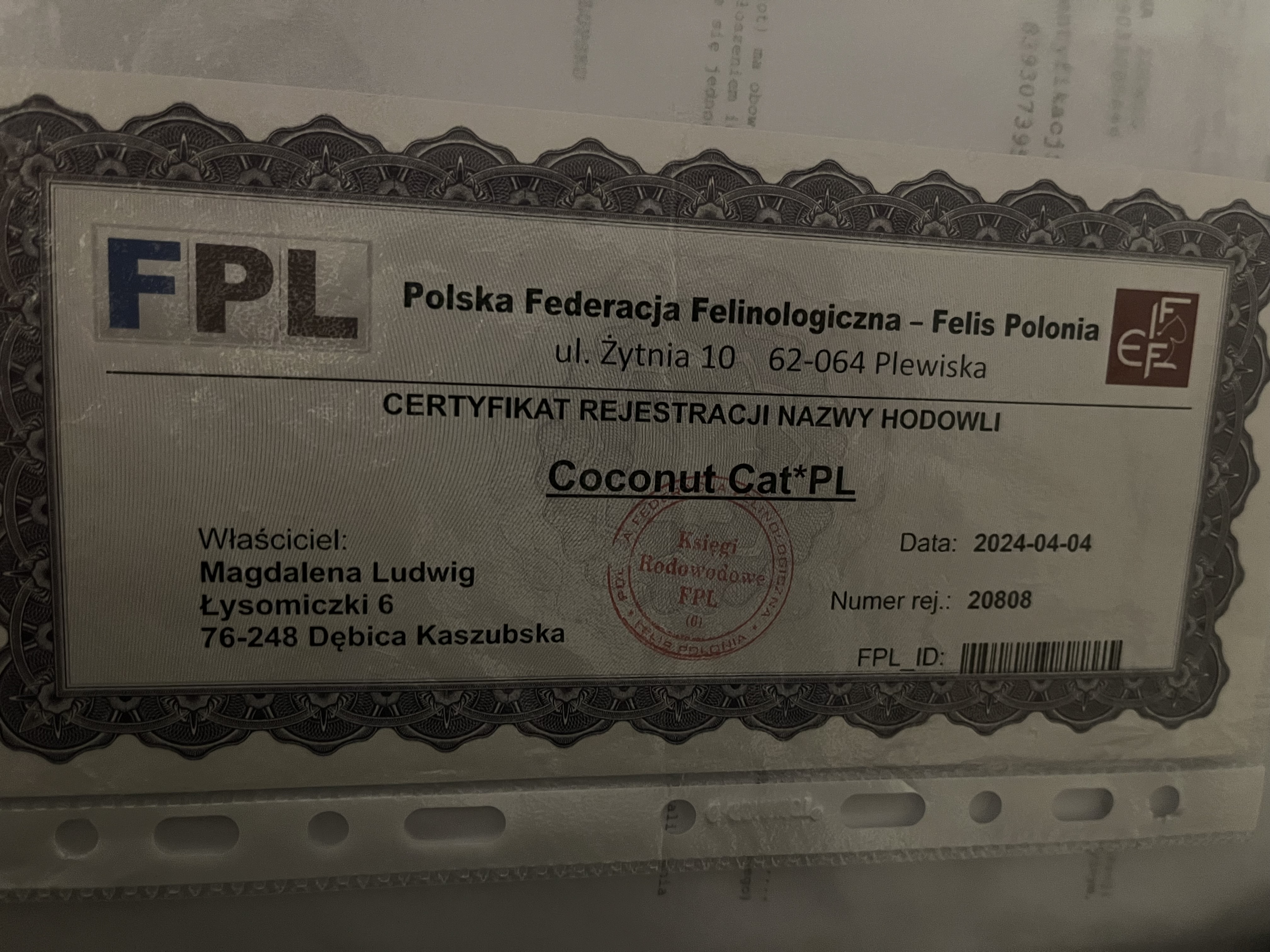 Na podstawie przes艂anych dokument贸w, nasz zesp贸艂 potwierdzi艂 偶e hodowla nale偶y do podanego przez ni膮 stowarzyszenia