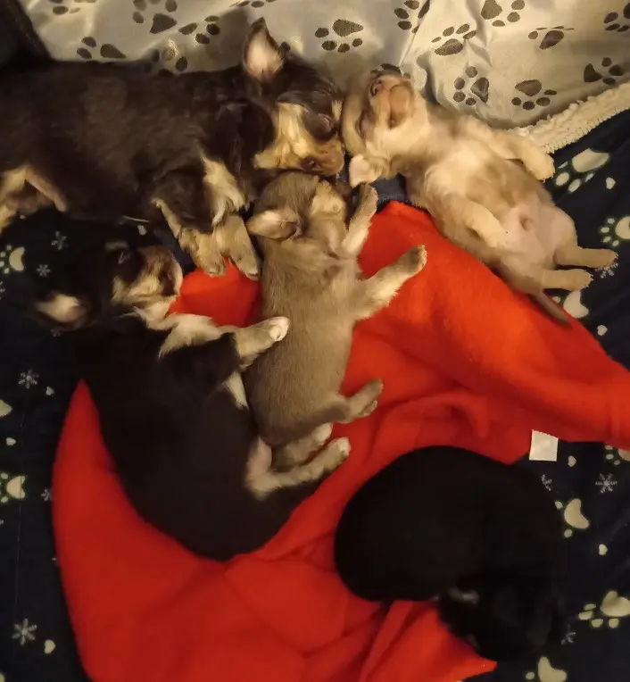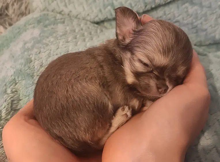 Biszkopcik urodził się 21.10.2025, to 200% energii w małych puchatym ciałku chihuahua. Bardzo chce już wychodzić na spacerki, a tam nie chodzi, tylko podskakuje i biega. Teraz, gdy na osiedlu jest duż