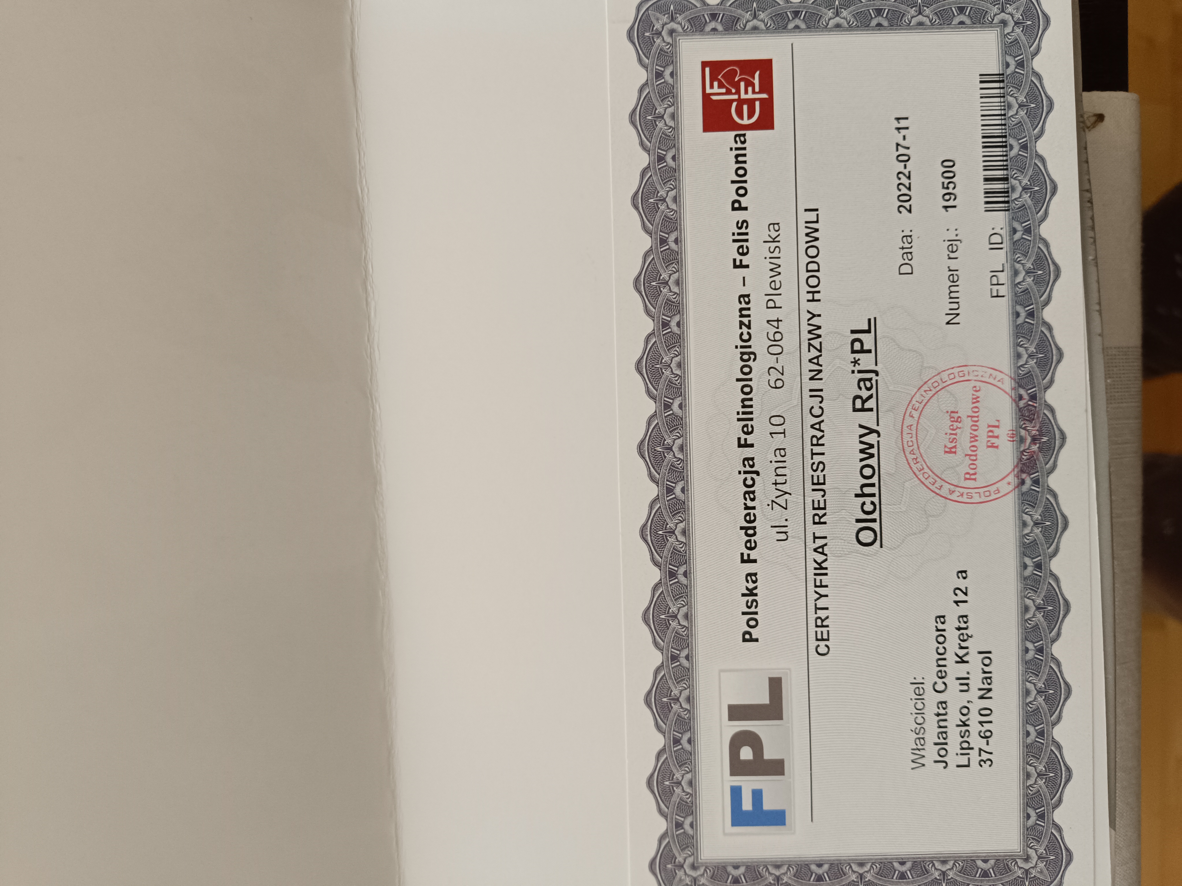 Hodowla Olchowy Raj PL zarejestrowana w Kkf FPL