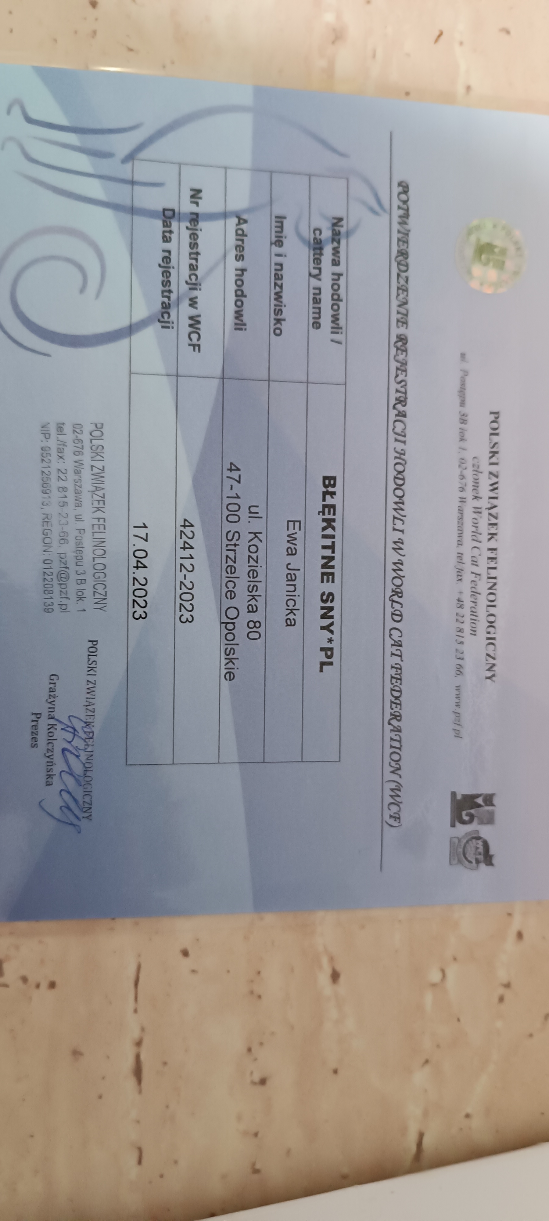 Na podstawie przesłanych dokumentów, nasz zespół potwierdził że hodowla należy do podanego przez nią stowarzyszenia