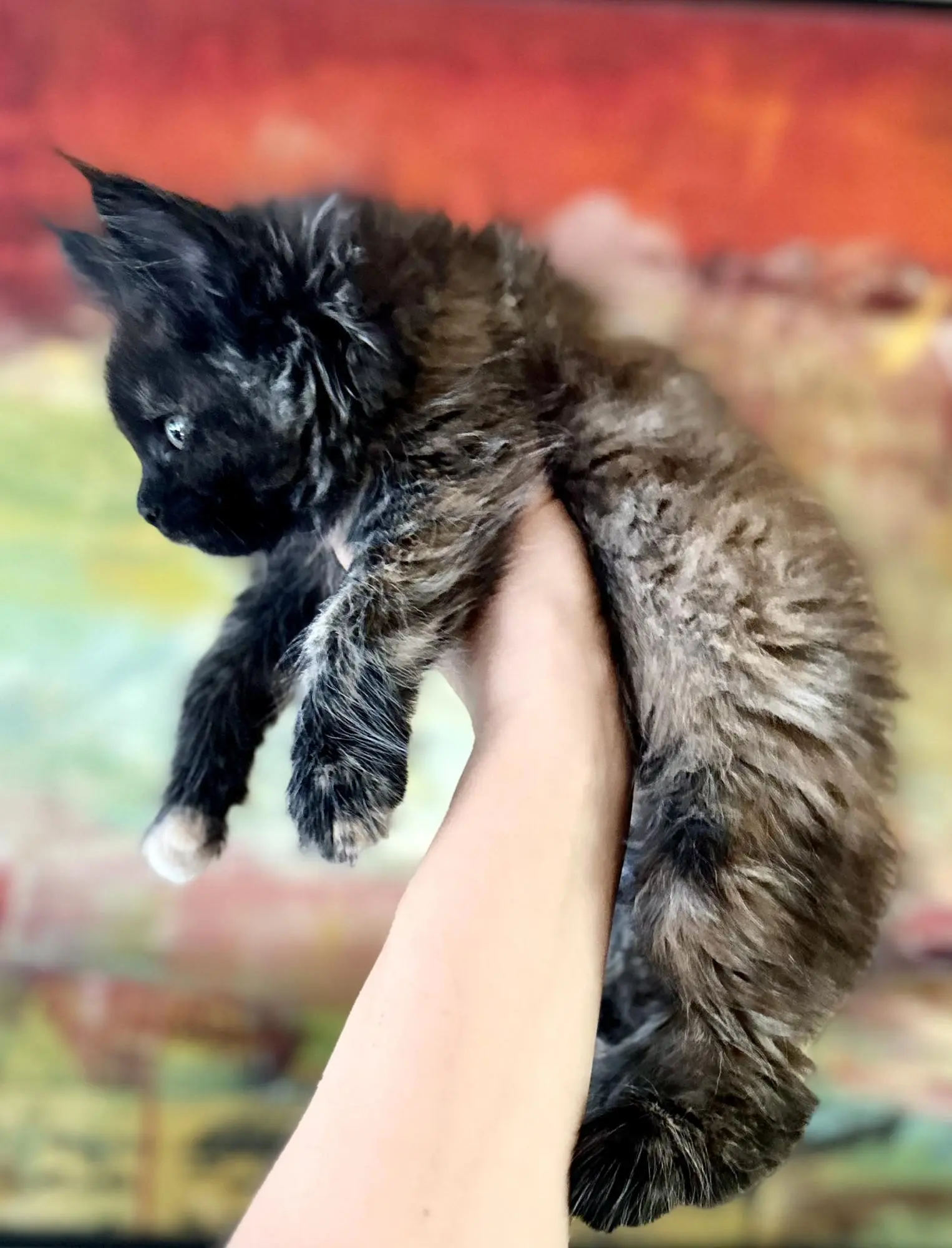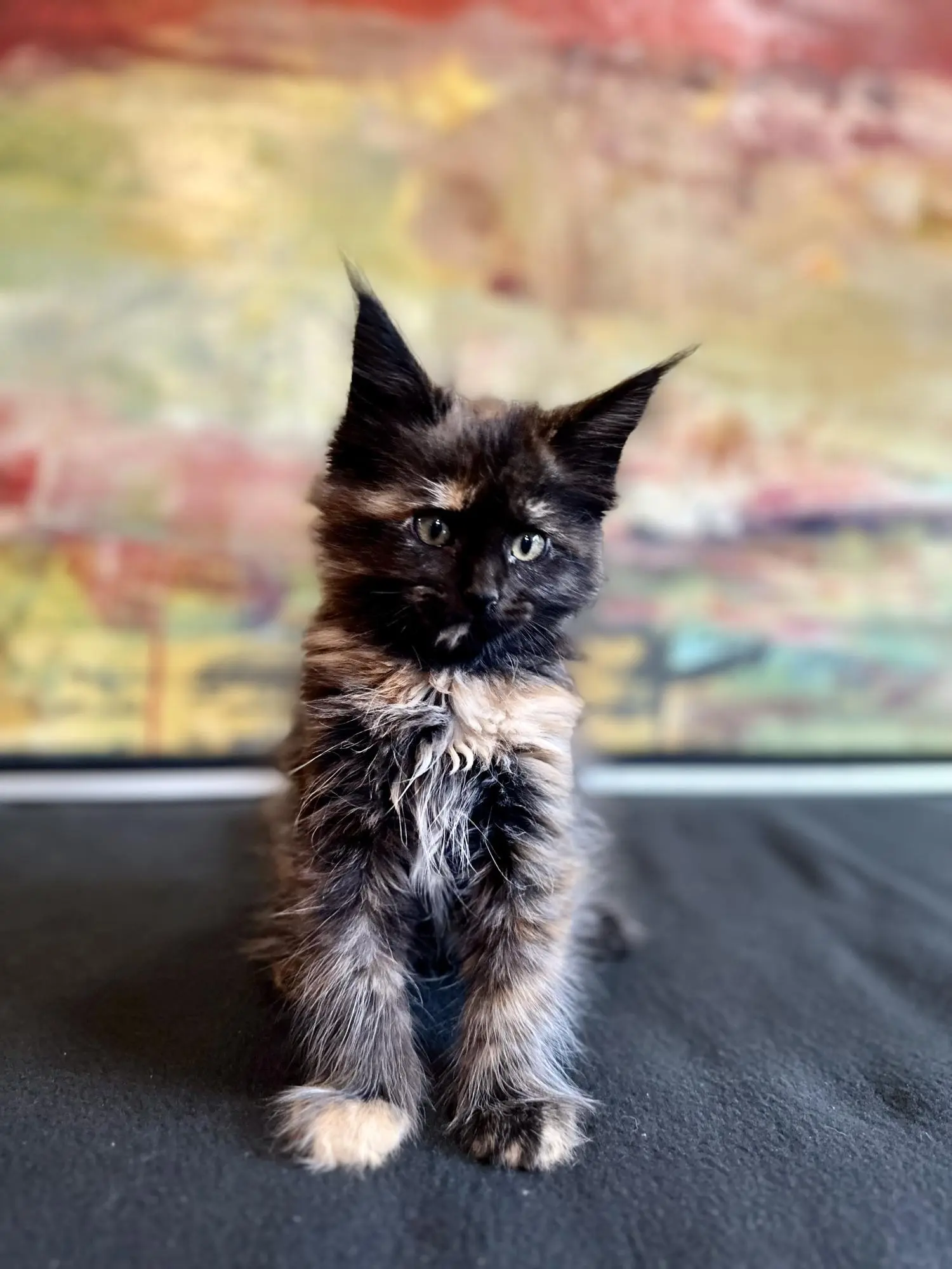 Koteczka Maine Coon fs czarny szylkret Aria Mithrim*PL, ur. 25.07.23 po obydwojgu rodzicach championach szuka kochającego domu.