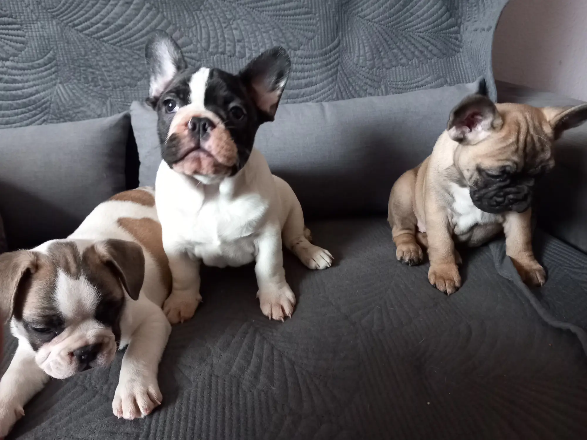 Szczenięta buldog francuski ur.22.01.2024 gotowe do odbioru zaszczepione odrobaczone po przeglądzie hodowlanym posiadają książeczkę zdrowia rodowód ZK.PL Kennel Club chip. Wychowywane w domu z dzieckiem bardzo aktywne i energiczne . Rodzice do wglądu na miejscu. Przy odbiorze spisujemy umowę kupna i sprzedaży. Odbiur osobisty płatność przy odbiorze. Zapraszam zostały tylko dwa pieski łaciate i suczka płowa.