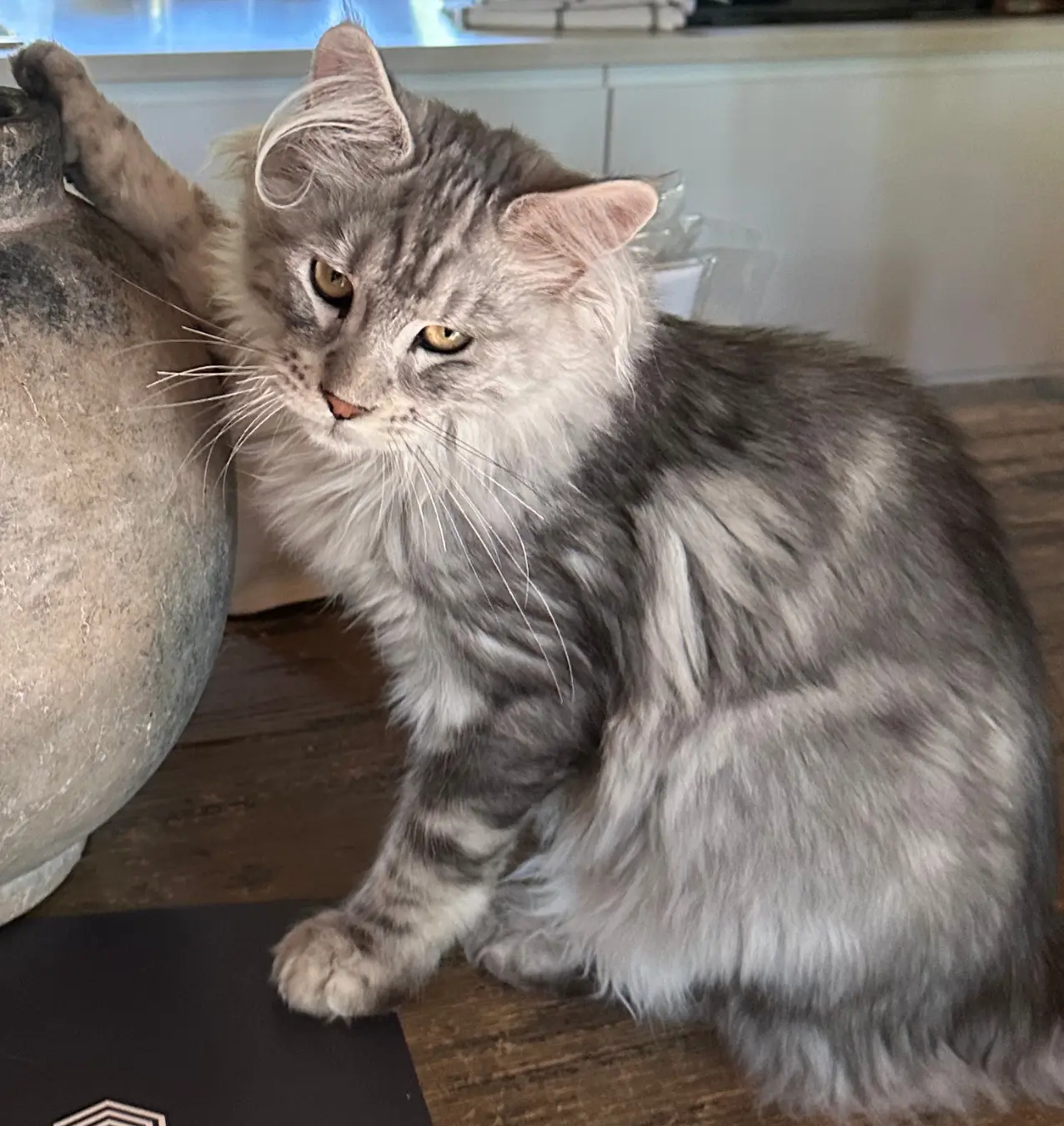 Kocur Apollo o wyjątkowym umaszczeniu na pyszczku jest on srebrny dymny, szuka nowego domku. Pochodzi on z pierwszego miotu naszej kotki Belli. Kotka przebadana na wszystkie choroby kotów tej rasy (w