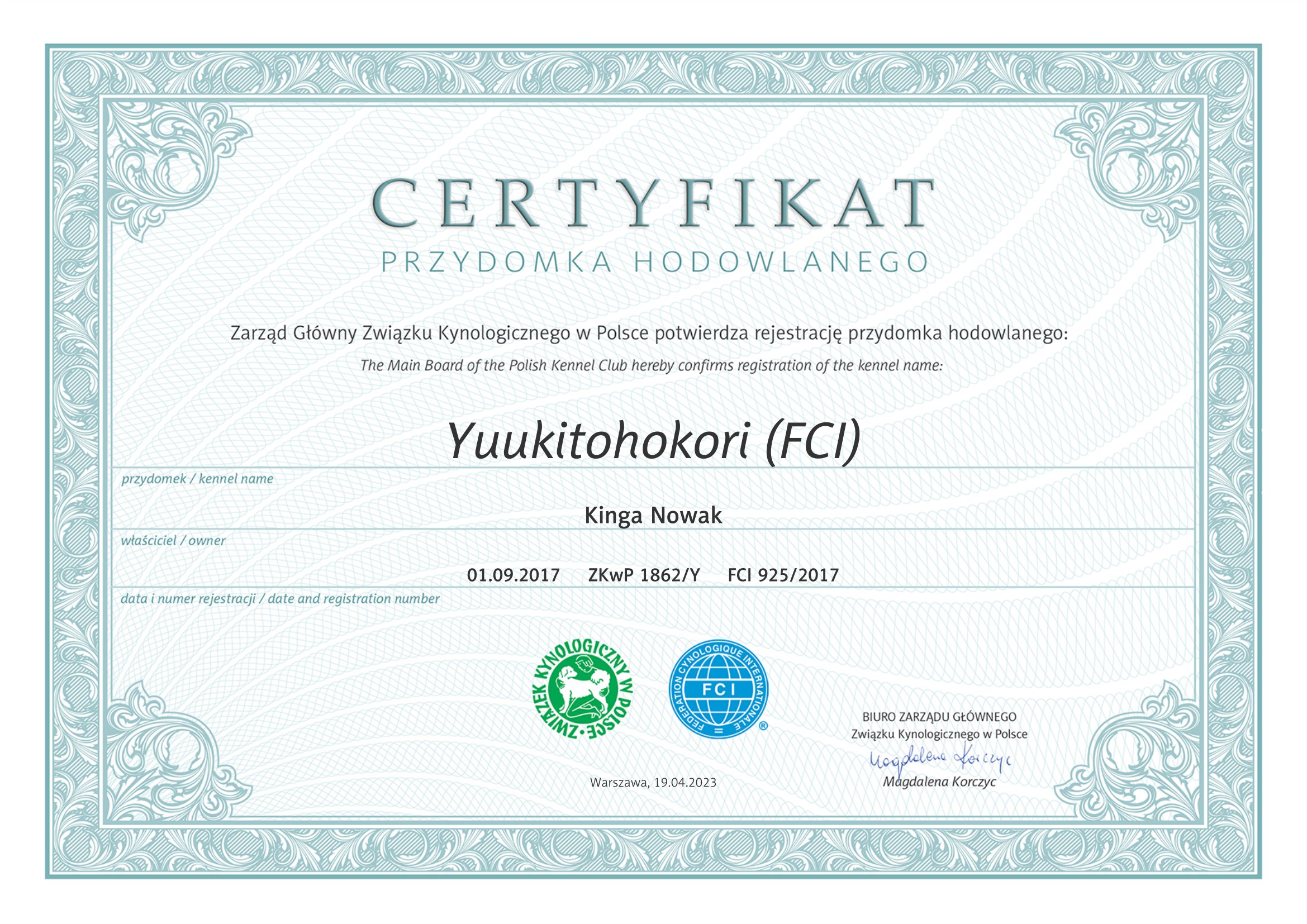 Przydomek hodowli Yuukitohokori (FCI)
