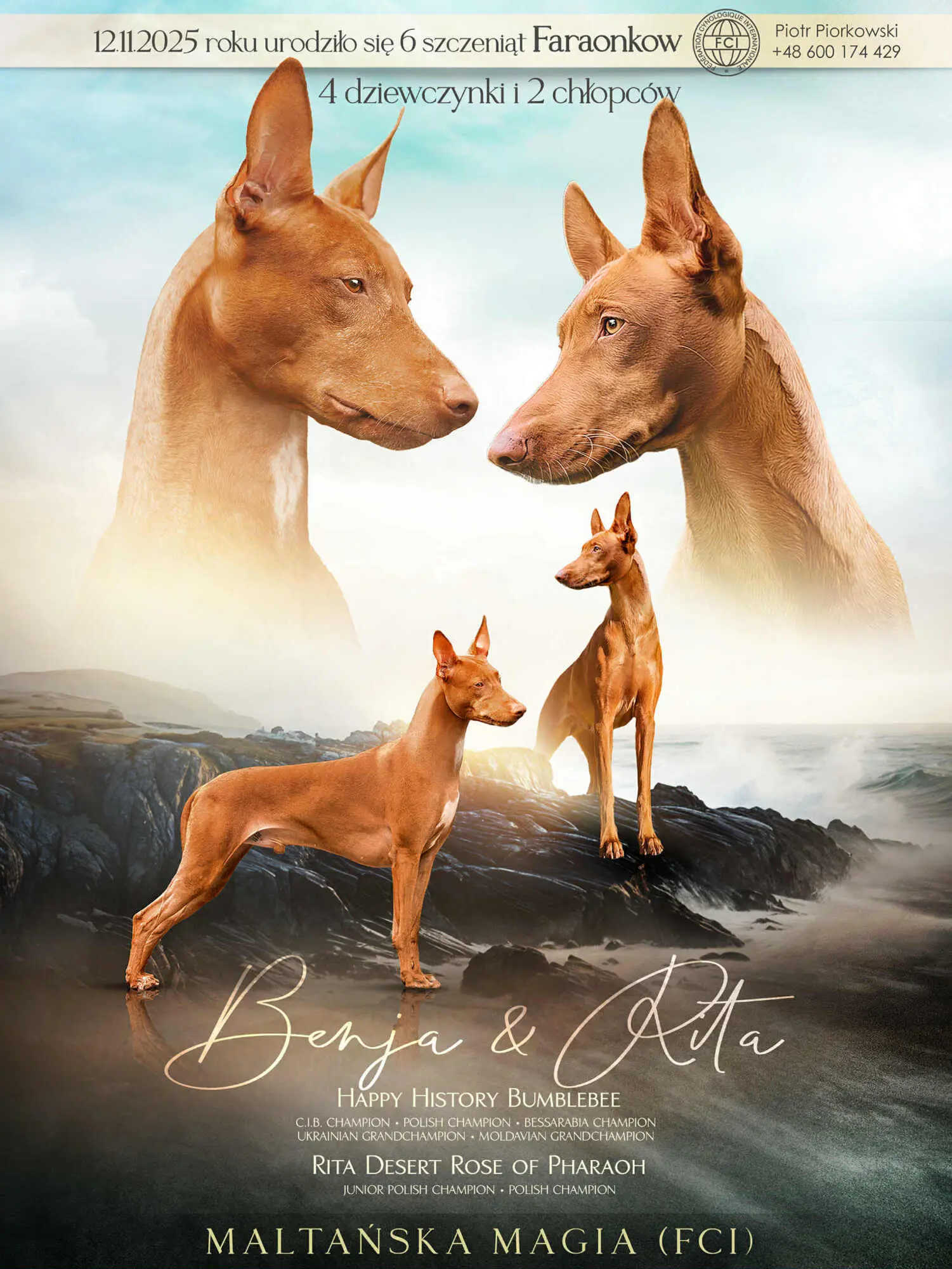 W naszej hodowli Maltańska Magia FCI/ZKwP dostępne są dwa pieski i dwie suczki rasy Pies Faraona,urodzone 12/11/2025.