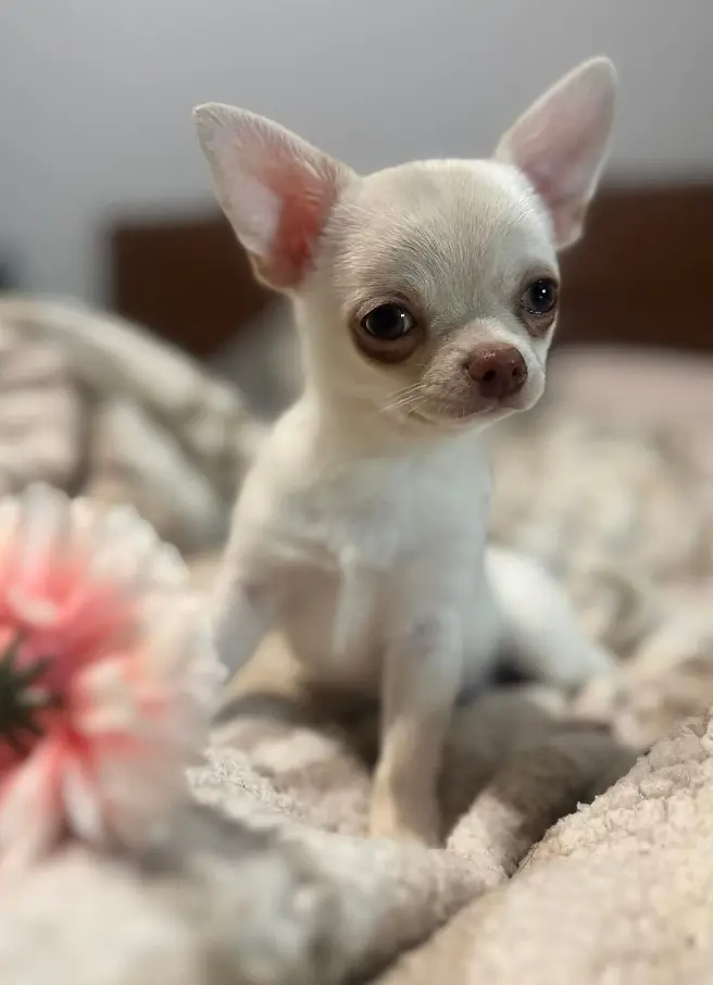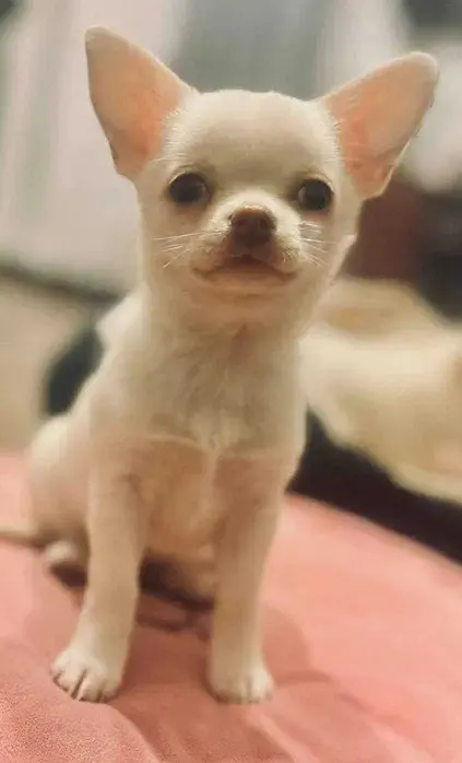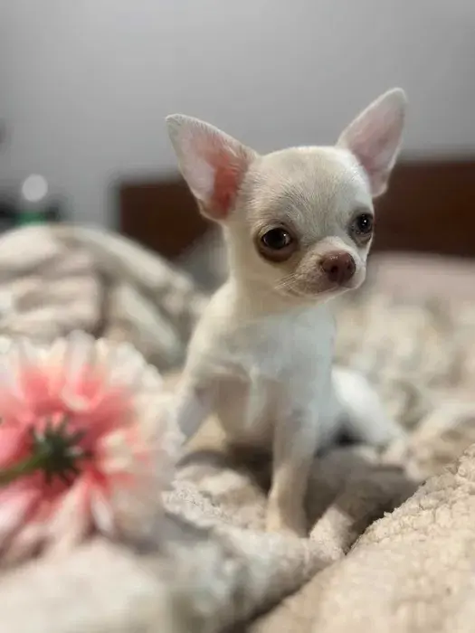Biszkopcik urodził się 21.10.2025, to 200% energii w małych puchatym ciałku chihuahua. Bardzo chce już wychodzić na spacerki, a tam nie chodzi, tylko podskakuje i biega. Teraz, gdy na osiedlu jest duż