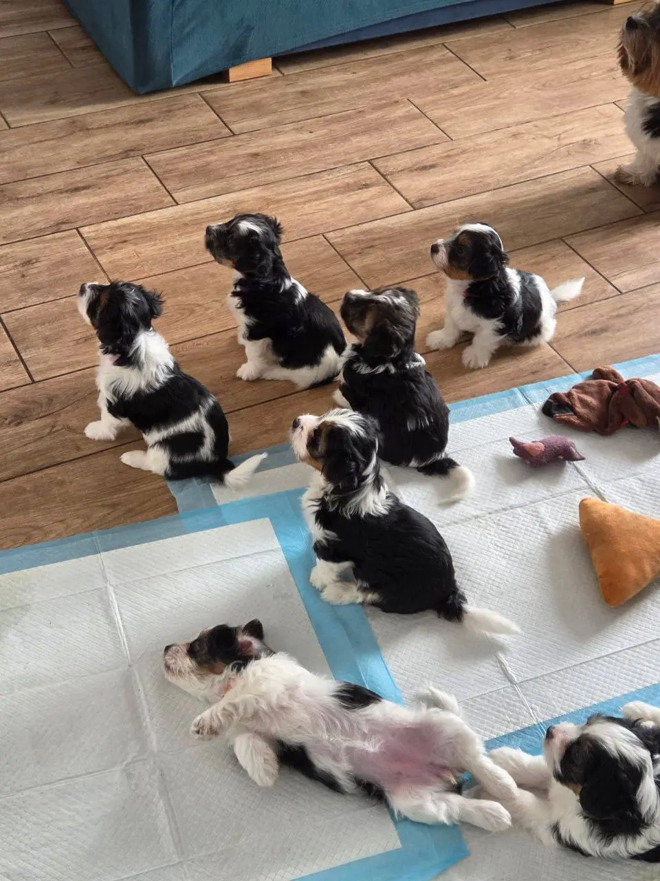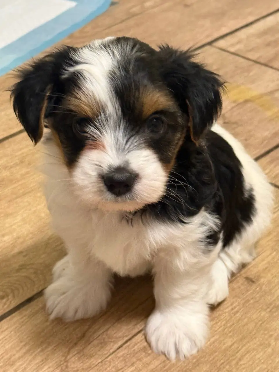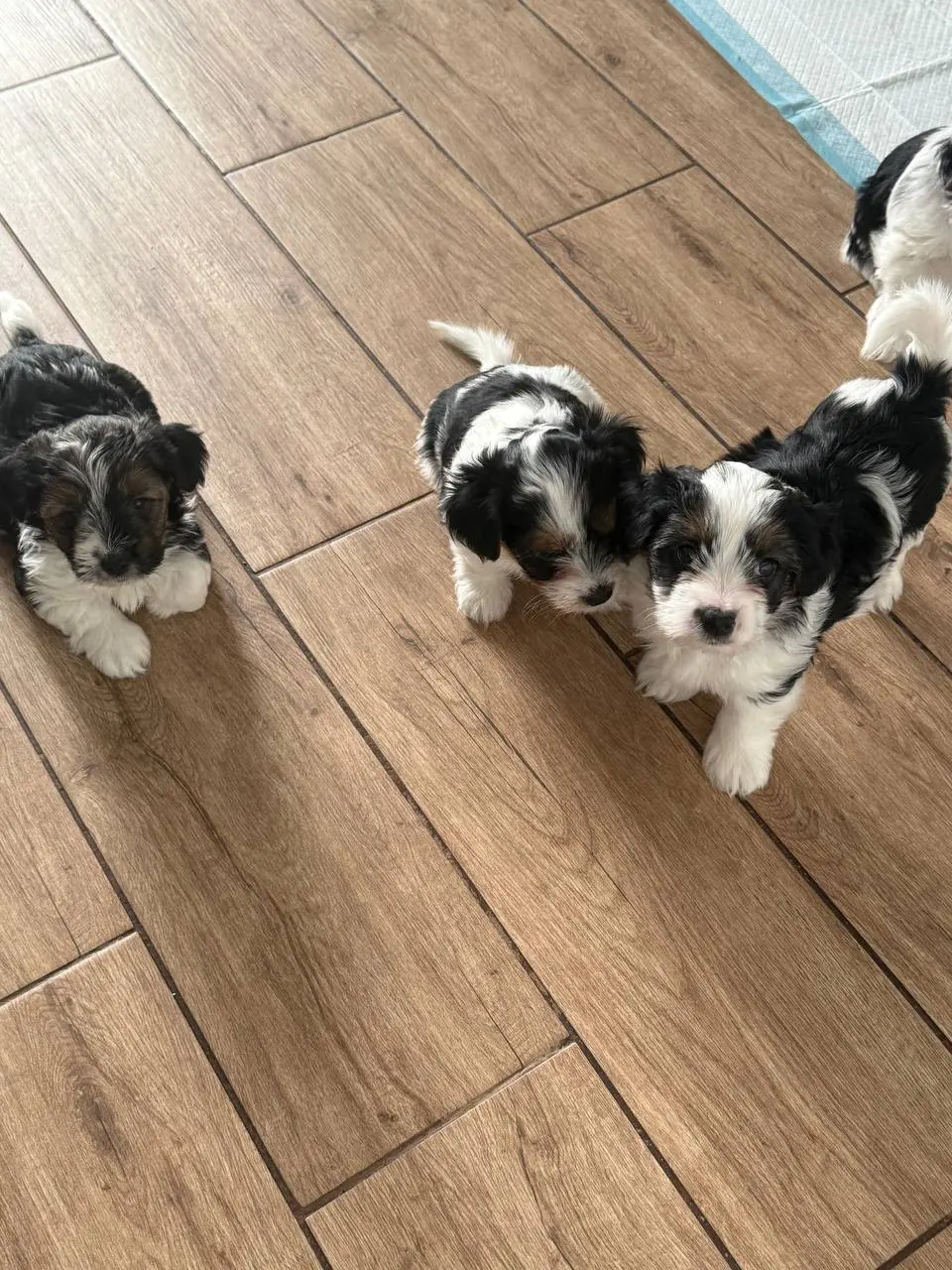Szczenięta Biewer Yorkshire Terrier. Zaszczepione, odrobaczone, serduszka przebadane, pieski jąderka na miejscu. Waga docelowa 2-2,5 kg. Uszka pięknie osadzone, psiaki wzorcowo umaszczone, ładnie zb