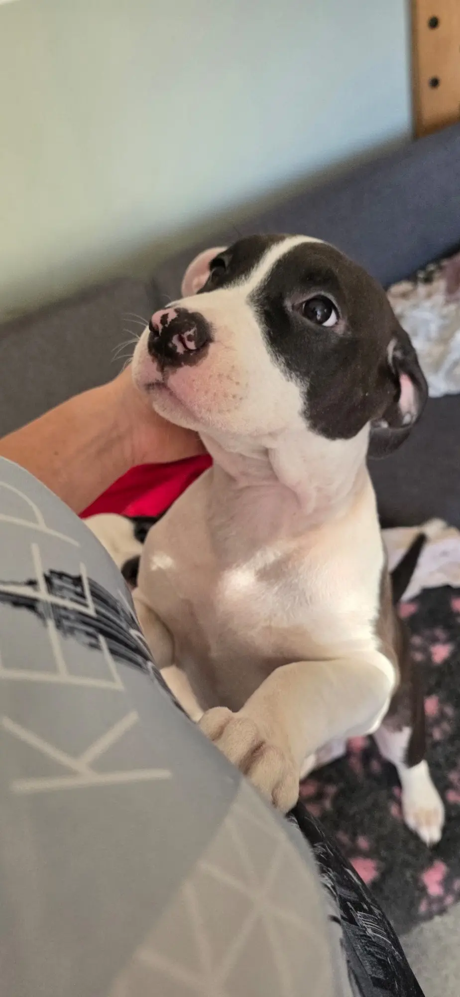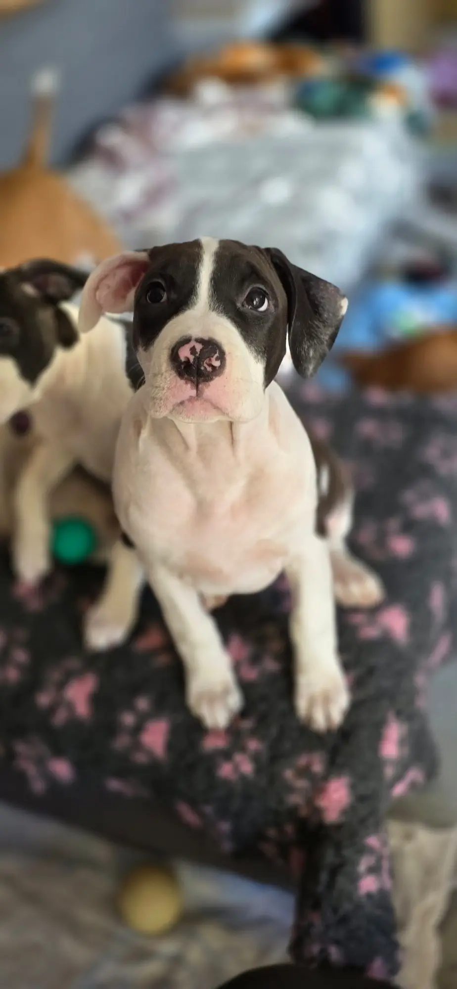 Cześć! Mam na imię ELOWEN ALL for You FCI w domu PANDA i jestem dumną przedstawicielką rasy American Staffordshire Terrier (ur. 25.11.2025). Mam jednak pewien "problem"...jestem psem „proludzkim".