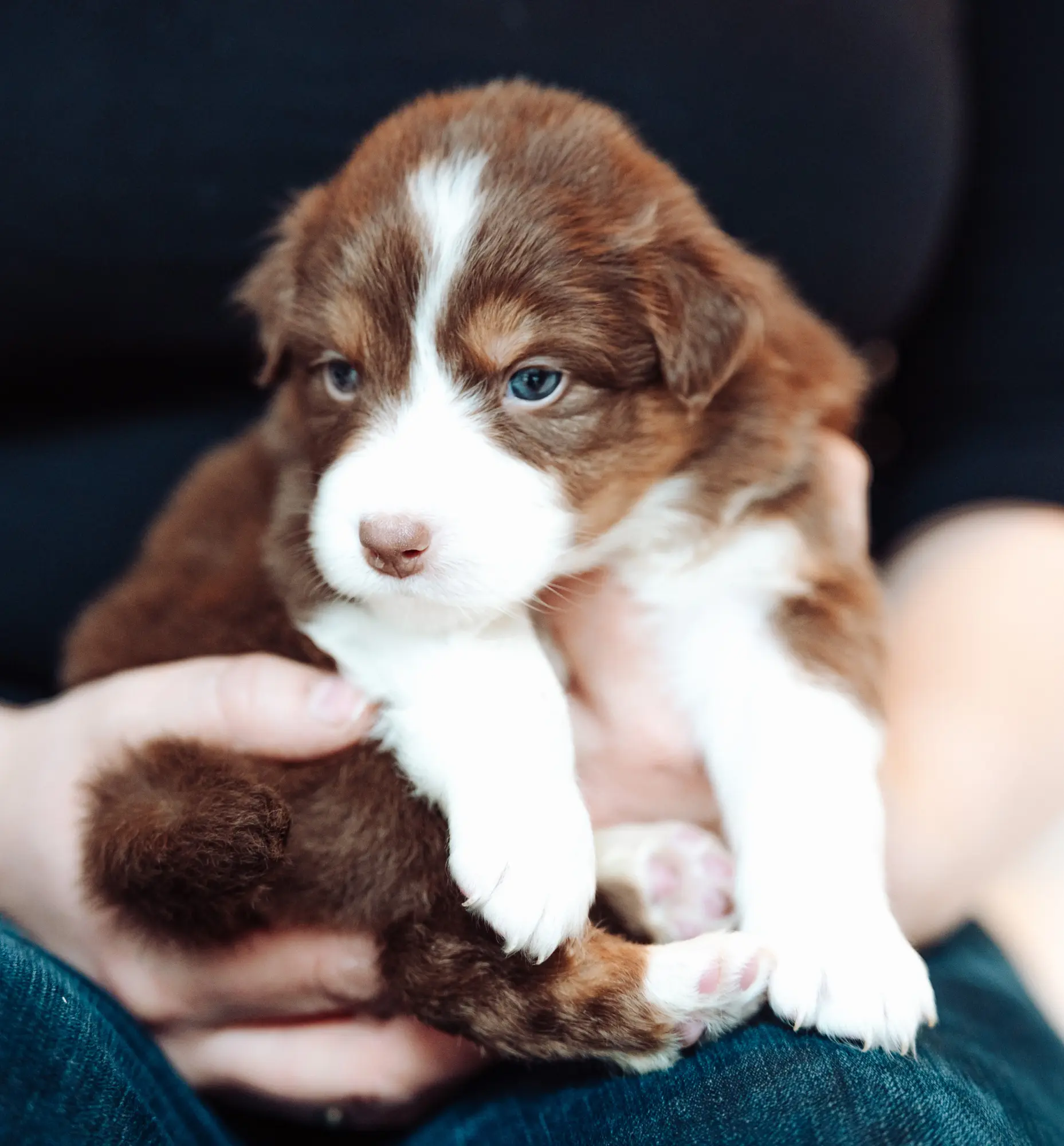 Mamy 9 cudownych maluszków. Dostępna jest niezwykła suczka red tri z ogonkiem 3/4 w głębokim, ciemnym odcieniu czekolady.