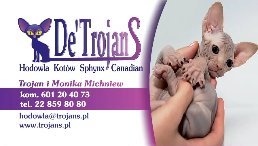 Z przyjemnością informujemy, że w naszej hodowli DeTrojanS*PL przyszły na świat kocięta Oferujemy w tym ogłoszeniu Kocurka rasy Sfinks Sphynx Canadian.