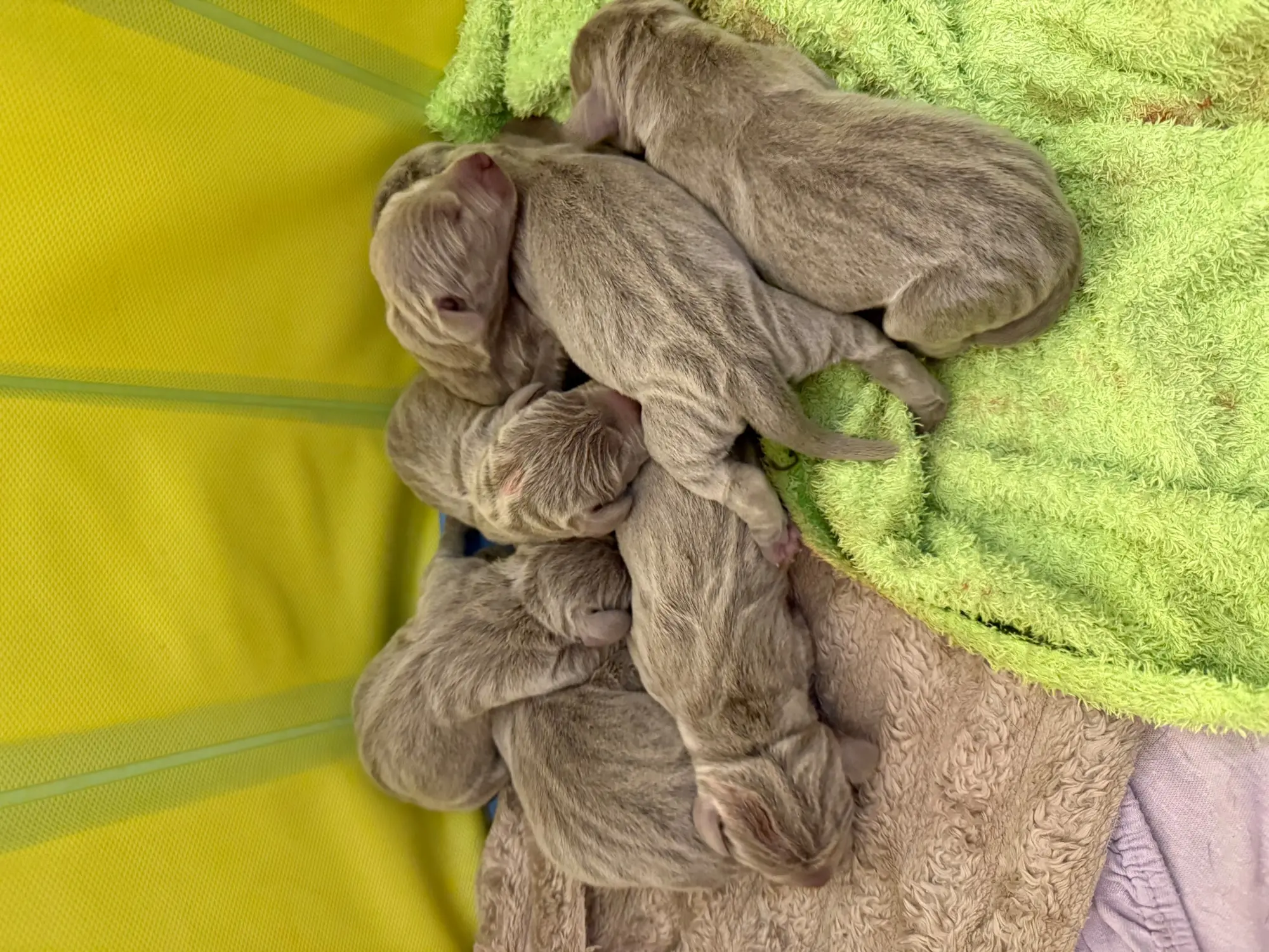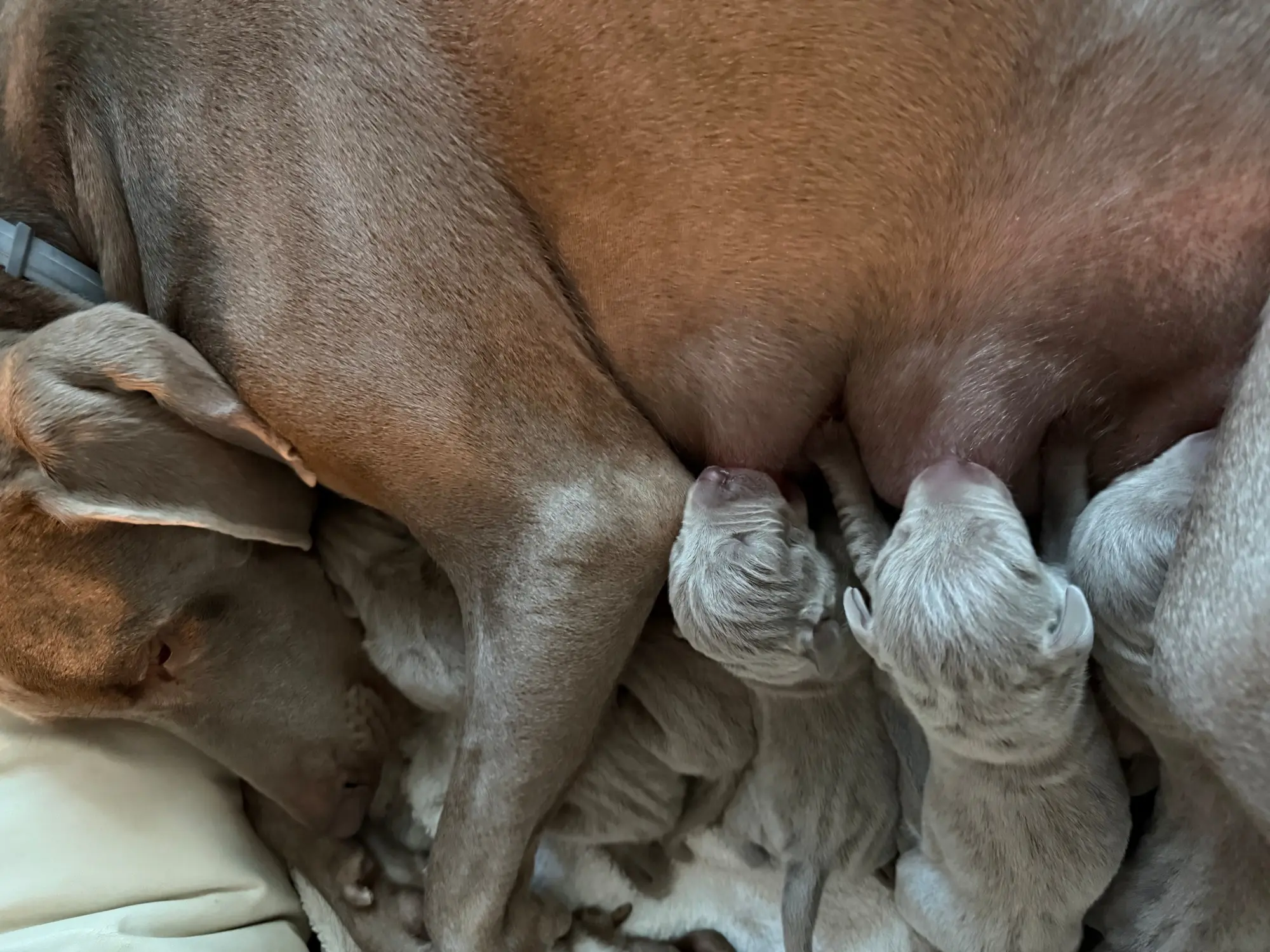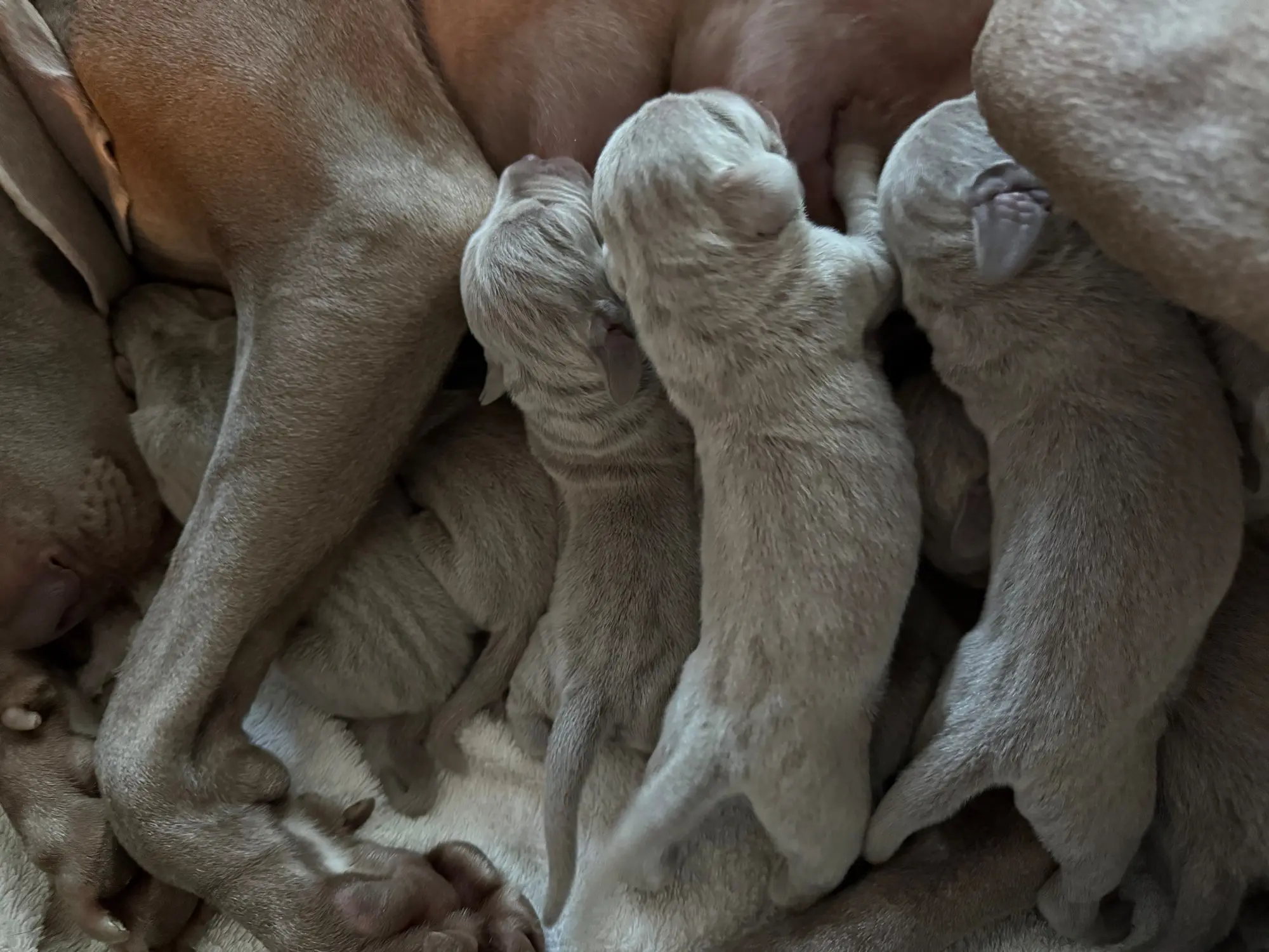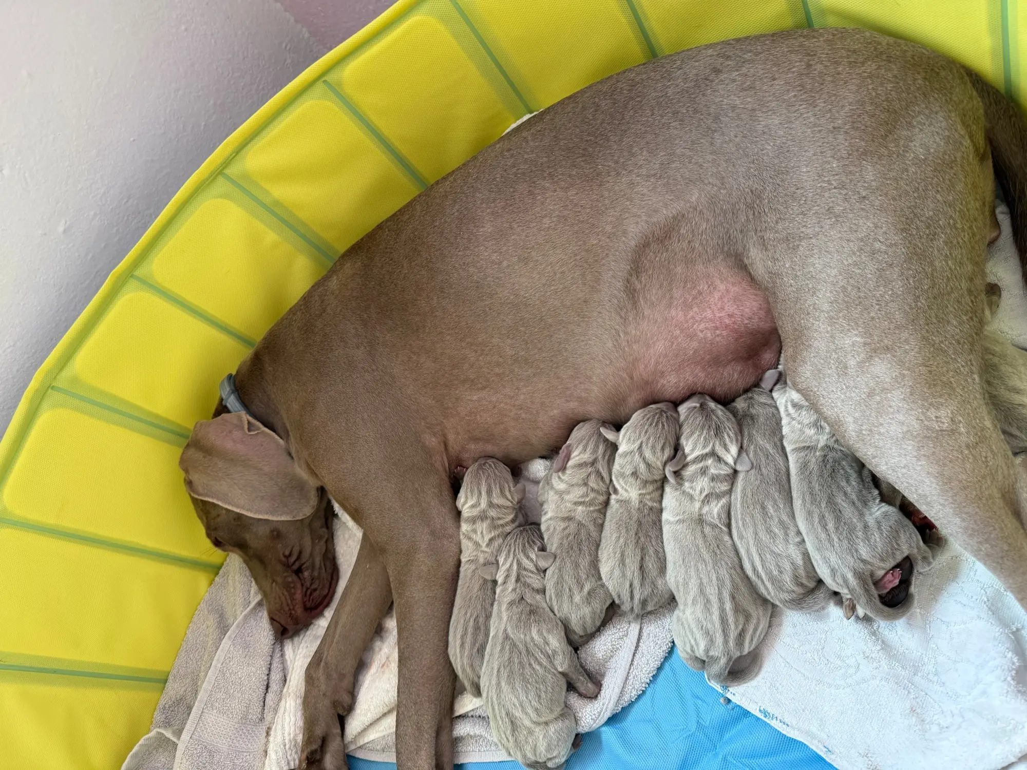26.04.2026 w nocy powitaliśmy na świecie pierwszy miot wyżłów weimarskich w hodowli As it’s supposed to be 🐾 ZKwP FCI